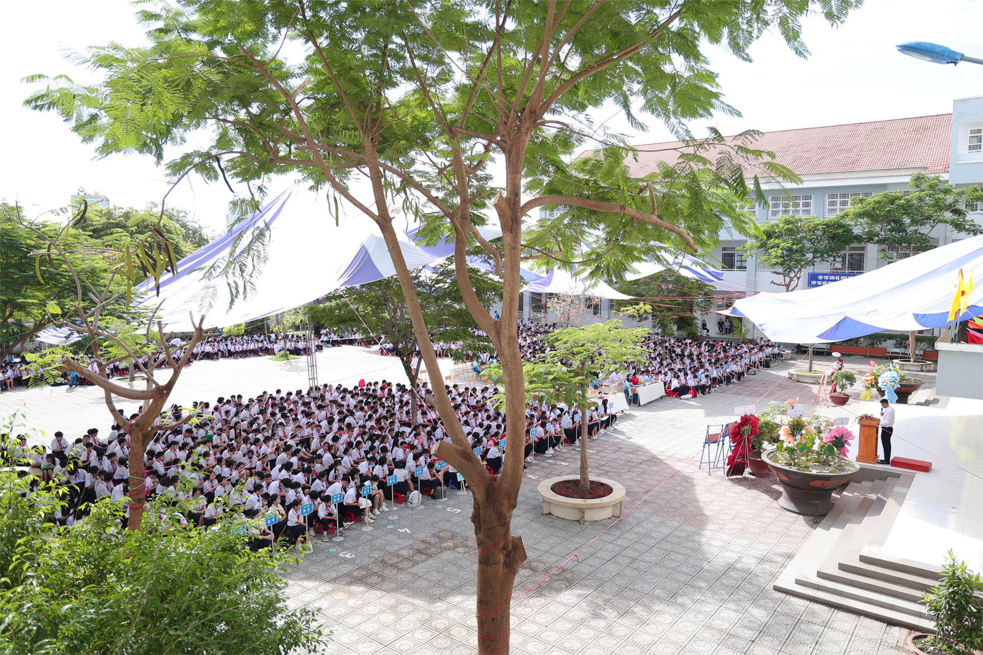 Từ năm 1977, trường chỉ có vài phòng học được làm bằng tre, lá. Sau đó được đảng và chính quyền cùng nhân dân đầu tư mở rộng diện tích, xây dựng 22 phòng học và các phòng chức năng kiên cố trên diện tích 6280m2. Đến năm 2016 trường được xây dựng trên diện tích 16000m2, có quy mô 01 trệt 03 lầu với 45 phòng học, 34 phòng chức năng, 24 phòng bộ môn, với đầy đủ trang thiết bị phục vụ tốt cho việc dạy và học.